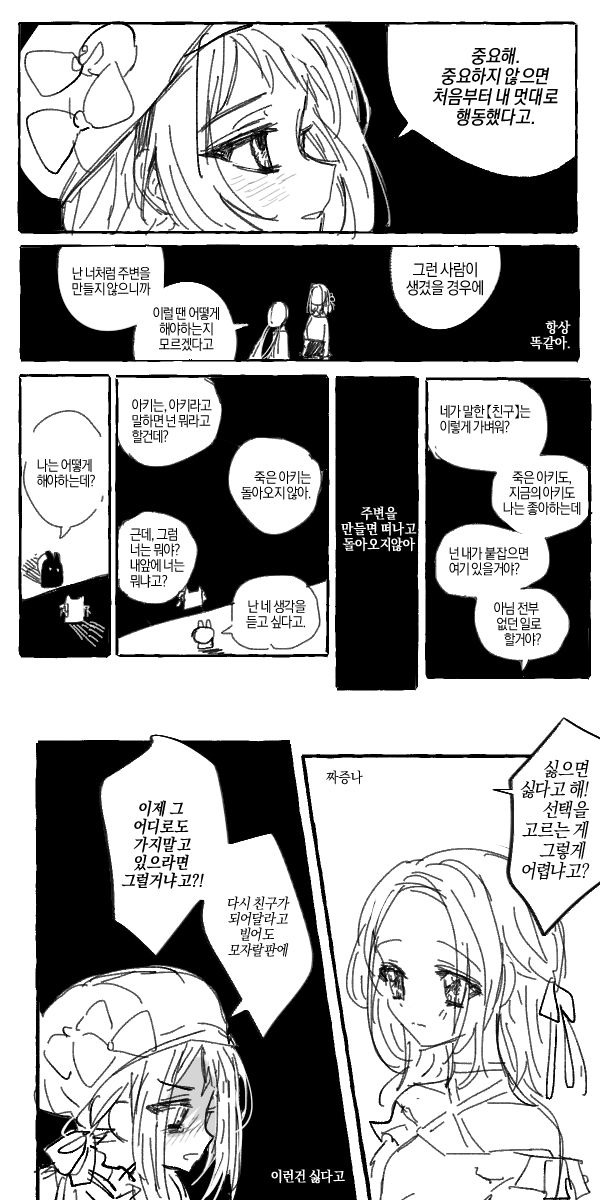 "확실한 건, 지금의 아키에게 나는 필요 없는 것 같아. 친구도 싫은 것 같고"