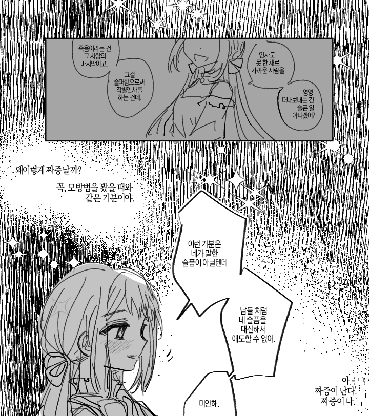 상대가 누구라도 상관없는 게 아니었다. 이게 상대가 말한 슬픔이라면 그는 지금 슬픔을 품고 있는 것이다. 스스로 그 감정이 무엇이고, 왜 이렇게까지 상대에게 밀어붙이고 정리되지 않은 말을 하게 된 것인지는 모르겠지만.