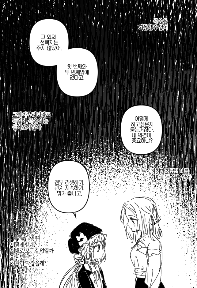 그럼에도 네 생각을 묻는 건, 네게 그럴 의지가 있는지 보고 싶기 때문이었을 거라고. 앞서 말했듯이 서로가 원하는 관계가 되어야 이루어질 수 있다고. 친구라는 건, 그런 거라고 네가 알려줬기 때문에. 가벼운 관계성, 이곳을 나가게 되면 사라질 관계성. 그렇게 생각했던 것이 이렇게 발목을 잡게 될 줄은 그 누구도 몰랐을 것이다.